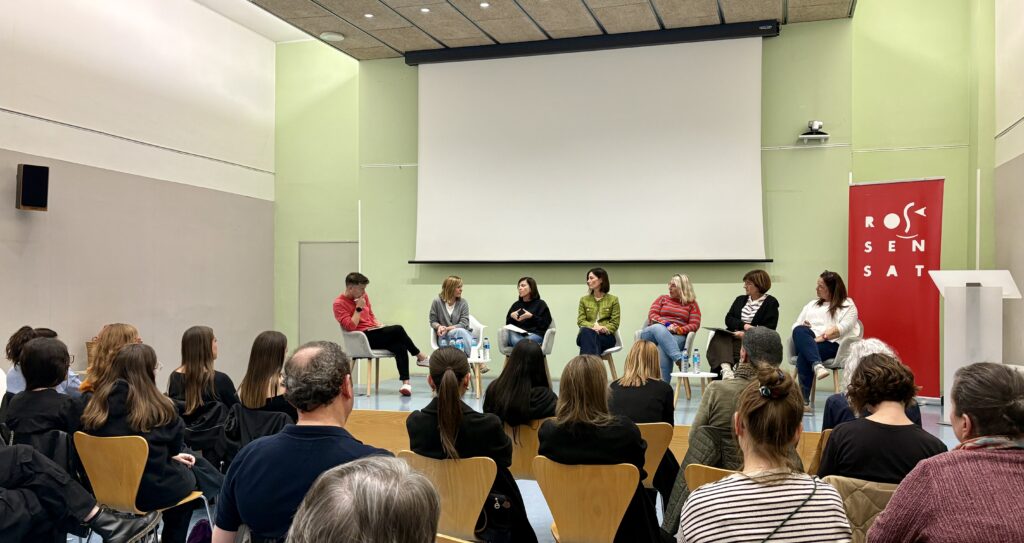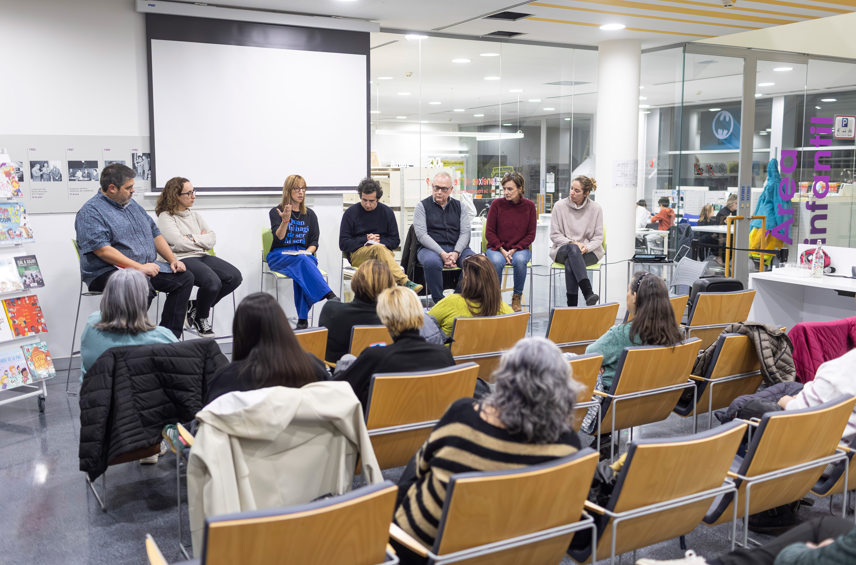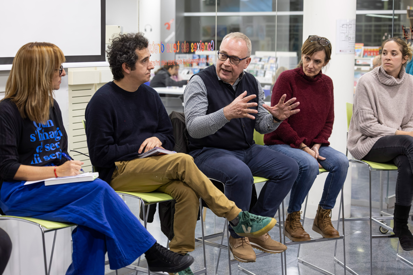 A continuació, es va iniciar una taula rodona amb professionals del món educatiu del 0-6: Rosa Vendrell, Maria Vendrell, Montse Montanyà i Montse Baliarda, amb Marta Secall com a moderadora. Durant la conversa es va reflexionar sobre com es viuen i es concreten els drets dels infants en el dia a dia dels espais educatius. Van compartir experiències, mirades i reptes, així com els drets del llibre que més els havien impactat o els havien convidat a repensar la seva pràctica.
