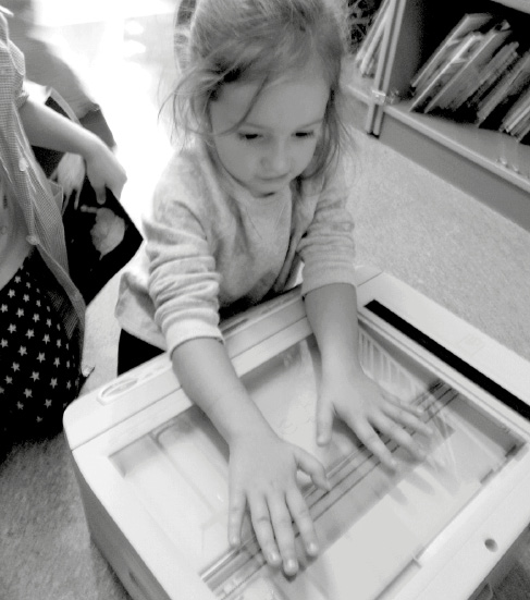 Colocar las manos sobre un frío cristal, sentir cómo cambian de color bajo el paso de una luz misteriosa, la quietud que surge ante lo desconocido, la escucha de sonidos inquietantes, el asombro ante la salida de un papel caliente que les devuelve la imagen de sus manos como huella de identidad deseosa de ser recreada y convertida en un nuevo objeto portador de deseos, anhelos y de la seguridad de haber vencido el miedo a la magia que se esconde tras el cristal de una fotocopiadora.