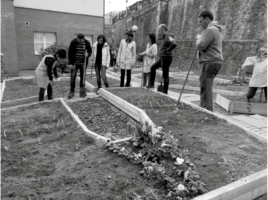 La decisión de ampliar el proyecto de la huerta a todo el curso escolar se tomó tras la visita de las niñas y niños de cinco años a la huerta de la Fundación Ekogune de Kutxa en Donostia. Miriam recuerda que, tras ver aquellas instalaciones, se dieron cuenta de que la huerta de Jakintza estaba desaprovechada. Hasta entonces, las familias de los niños y niñas del grupo de cinco años ayudaban en la preparación de la tierra y solo se plantaban lechugas, tomates y vainas, que se recolectaban antes de las vacaciones de verano. «Al volver en septiembre, la huerta estaba en muy mal estado», comenta la andereño Juani. La huerta de todo el curso se puso en marcha en septiembre, pero en los meses siguientes se dieron cuenta de que era muy incómoda para niños y niñas, especialmente cuando llovía y había barro. Por eso, pensaron que había que organizarla de otra manera. Tras tomar parte en un curso específico de formación, convocaron a las familias a una reunión de información y tuvieron una agradable sorpresa. Más de veinte madres y padres estaban dispuestos a colaborar en la reestructuración de la huerta, y así en octubre se iniciaron los trabajos.