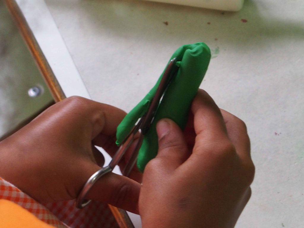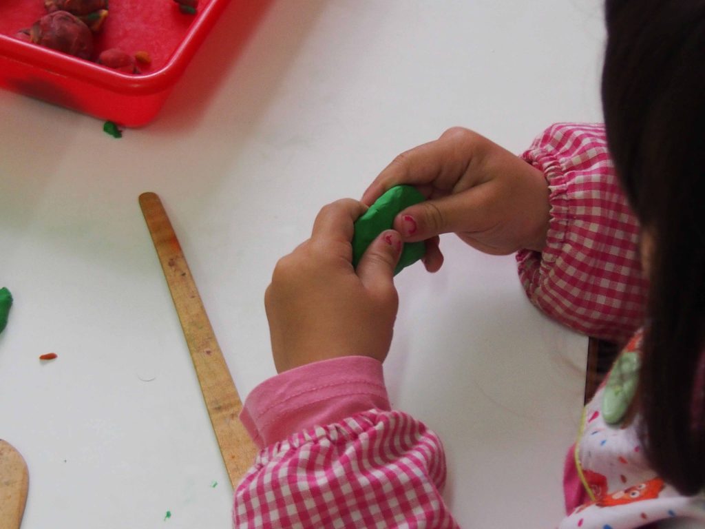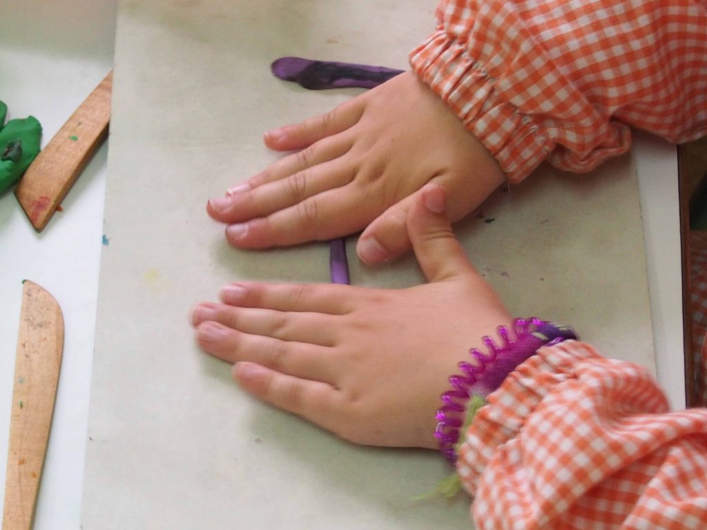 A través del modelado el niño y la niña amasa, sumerge sus dedos, aplasta, enrolla, une, desune, rompe, redondea… en definitiva, domina la materia.
