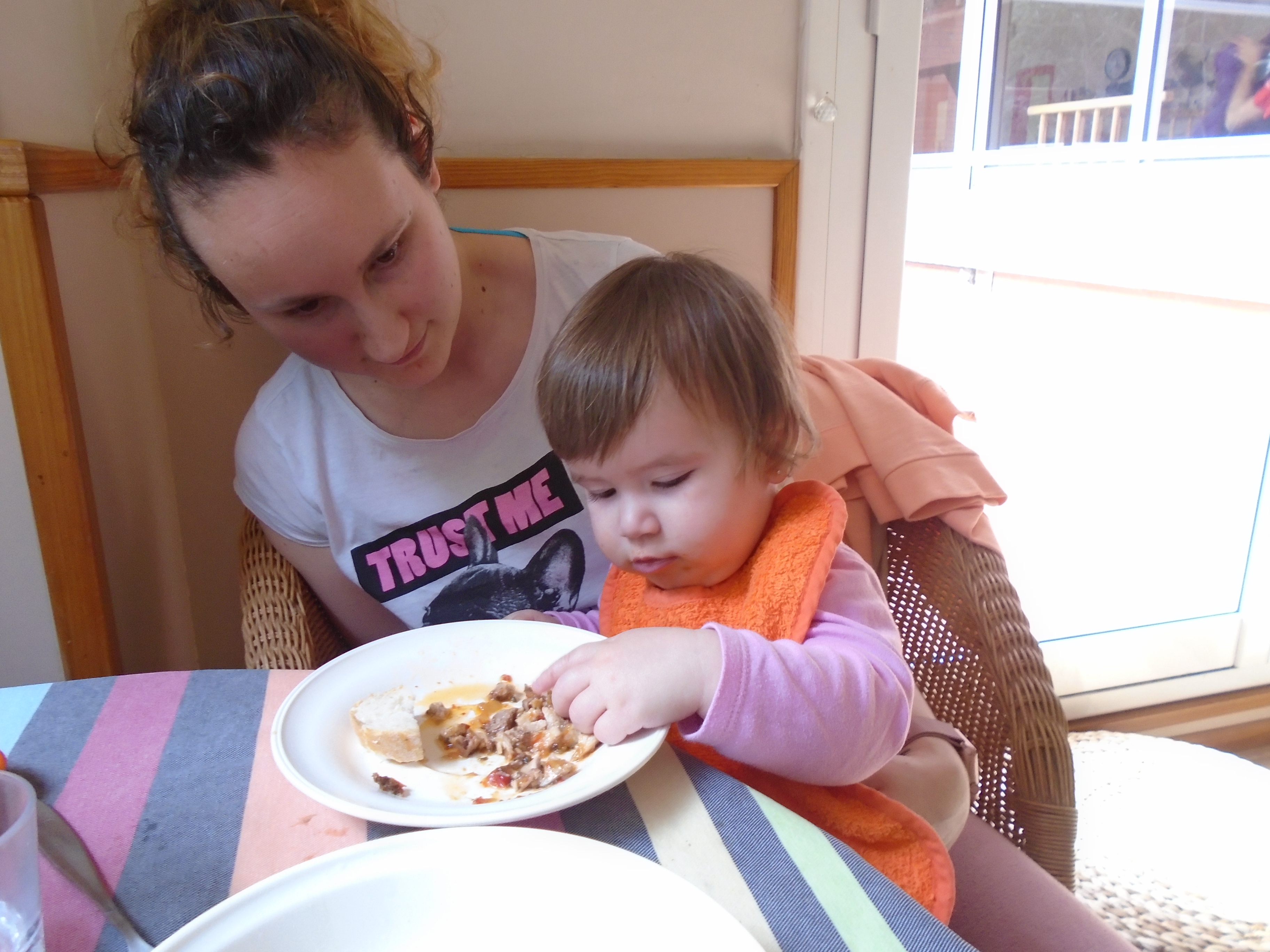 Comida en la falda en la E. B. M. Bellmunt. Acompañamos las comidas en la falda hasta que observamos que el niño o la niña están preparados para aceptar el paso a la mesa. Para hacerlo tenemos en cuenta los aspectos que se comentan