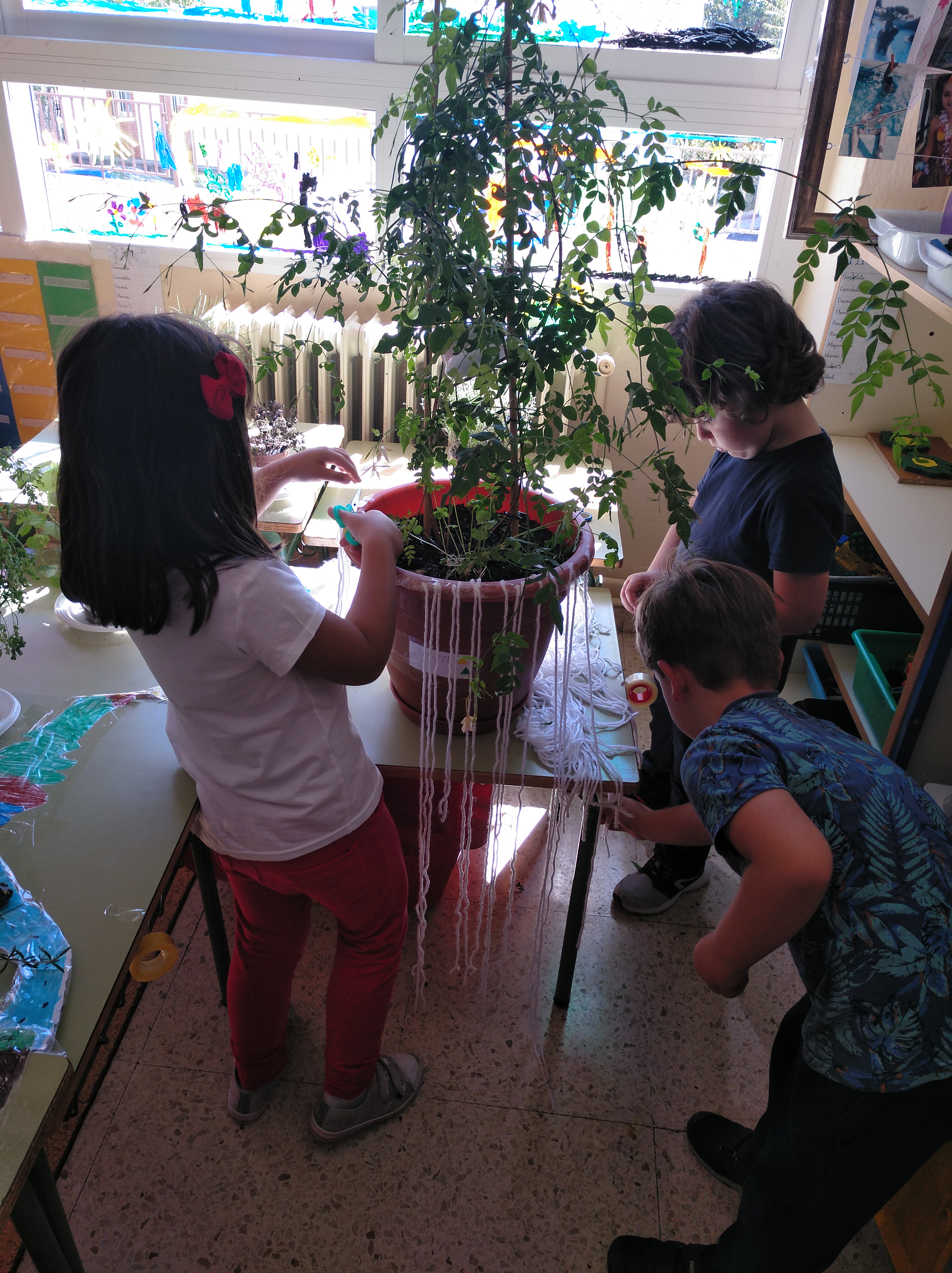 El inicio de nuestro proyecto surgió cuando se juntaron todas las plantas para su cuidado. De repente, una niña exclamó: «¡Parece un bosque!».