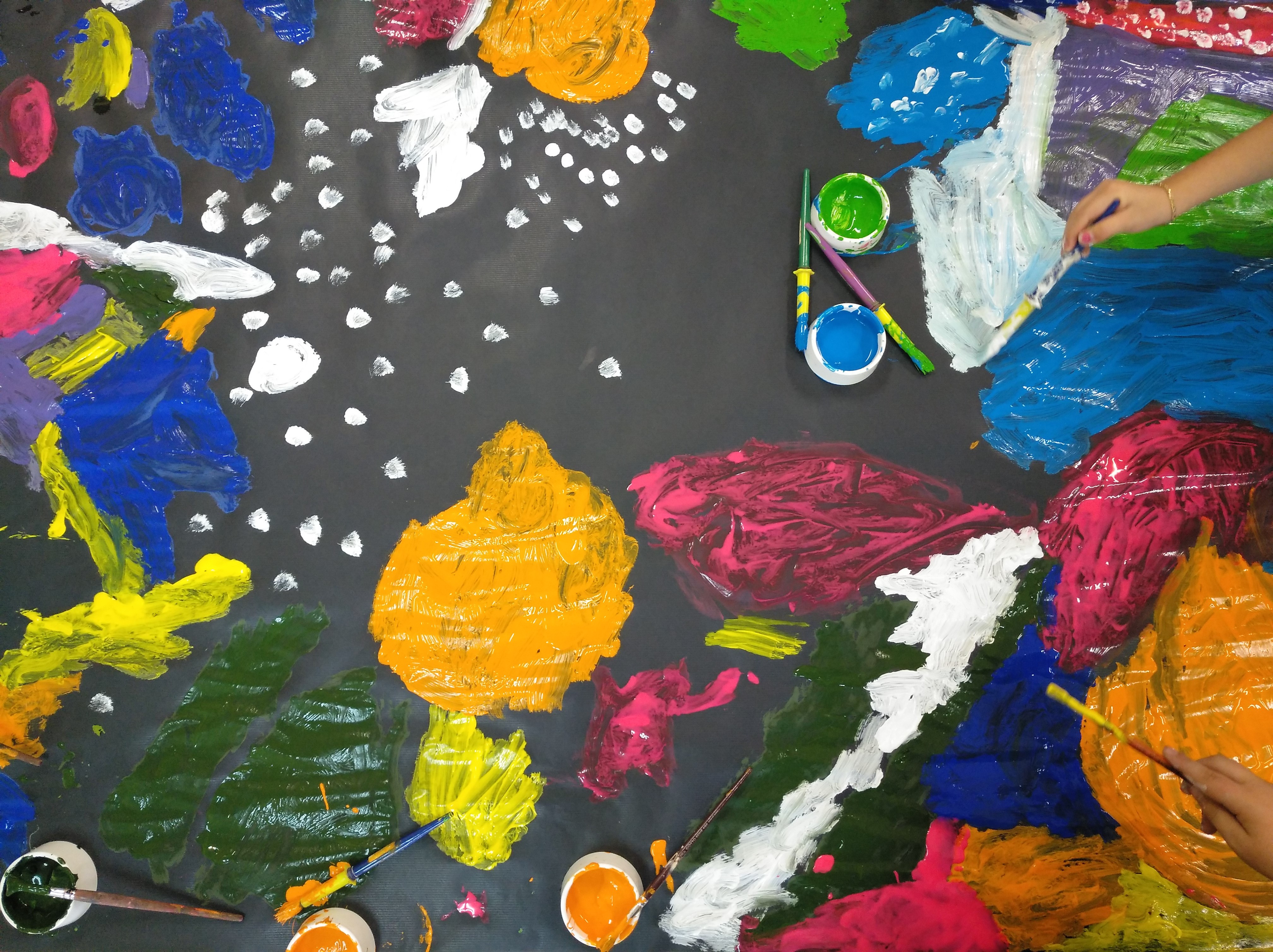 Se comenzó con la técnica de la extensión por las ventanas, y para ello contamos con la ayuda de los niños y niñas de primero de primaria, que habían estado el curso anterior conmigo. Promovimos así una actividad de tránsito colaborativa y emocional porque aún sentían los mayores apego de su antigua clase.