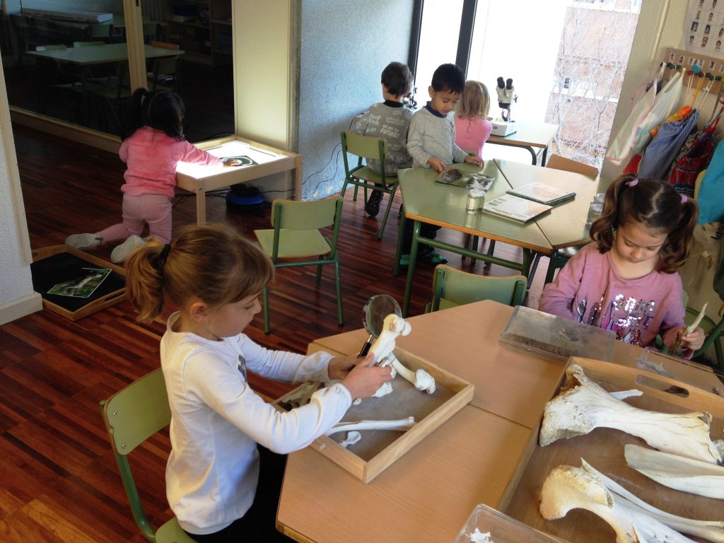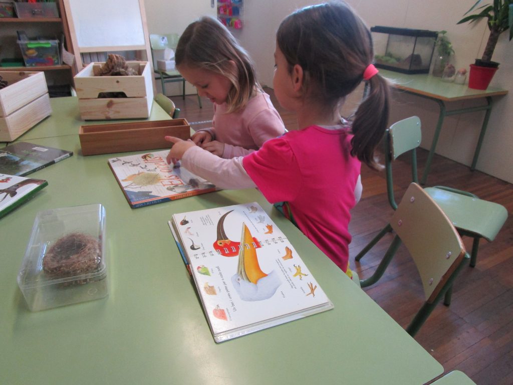 El espacio de naturaleza es uno de los ambientes de aprendizaje propuestos para llevar a cabo en la etapa de educación infantil a raíz de la reflexión habitual sobre la práctica en la escuela. Está compuesto por diversas muestras de elementos naturales dispuestos al alcance de los niños y las niñas para que puedan observarlos y generar conversaciones sobre lo que descubren. –¡Un nido! –dice Nil. –¿Qué tiene? –le pregunto. –Madera –me contesta. –¡Palitos! –añade Sara. –¿Y cómo se aguantan los palitos? –les pregunto. –Con pegamento –contesta ella. –¡Pero los pájaros no tienen pegamento! –le puntualiza él. –Ah... ¡ah, sí! ¡Con barro! –resuelve Sara. Estamos en un grupo del ciclo de infantil de la escuela Ferran Sunyer del barrio de Sant Antoni de Barcelona. Sara tiene cuatro años y Nil seis. Él ha compartido con la maestra, sentada a su altura, el descubrimiento de un nido hecho de ramitas con restos de barro y Sara se ha añadido y ha enriquecido la conversación. Otros tipos de nidos de medidas y componentes distintos y algunos libros complementarán sus observaciones. Dentro de un rato lo expondrán al resto de compañeros en un corro que les permitirá compartir su descubrimiento y quizá generar algún interrogante más al respecto, a la vez que servirá para cerrar la sesión. Es el espacio de naturaleza, uno de los ambientes de aprendizaje propuestos para llevar a cabo en la etapa de educación infantil a raíz de la reflexión habitual sobre la práctica en la escuela. Está compuesto por diversas muestras de elementos naturales dispuestos al alcance de los niños y niñas para que puedan observarlos y generar conversaciones sobre lo que descubren. Expondremos los aciertos, y también los puntos débiles, que hemos observado en el transcurso del montaje de este espacio, las ideas iniciales, la consulta de artículos, la plasmación de los objetivos, la creación de un fondo de material y su almacenamiento, así como la reflexión sobre la actuación de la maestra. Todos estos aspectos toman forma en el espacio de naturaleza para crear un contexto que impulse en los niños el aprendizaje del método científico. Proyección de ideas, asesoramiento y concreción La primera fase en la que nos encontramos inmersas en el ciclo de infantil estuvo marcada por el estímulo, el reto de crear una nueva propuesta. Es un momento cargado de ilusiones, ideas locas, fantasías sobre lo que se quiere conseguir, evocación de lo que se ha visto u oído... A menudo empezamos la casa por el tejado con las búsquedas por internet o la acumulación de material, porque nos es lo más fácil y accesible, pero hay que entender este periodo, divertido y caótico, como paso previo a la proyección de lo que se quiere conseguir y, sobre todo, a la contextualización en nuestra escuela según las necesidades y los objetivos que queremos conseguir. Así pues, el proyecto no acabó en esta fase soñadora y se introdujeron elementos de reflexión, como por ejemplo una búsqueda cualitativa de otras experiencias parecidas, el contraste de opiniones con otros profesionales y el análisis de las propias ideas. También fue importante superar la comodidad individual y la seducción de lo que se encuentra por internet para dar paso a la reflexión y la planificación conjunta de todo el equipo de infantil. Las reuniones donde unas y otras exponen sus ideas, así como las dudas y las incertidumbres, permiten que todo el equipo tenga claro el objetivo que se quiere conseguir y cómo se trabajará: agrupación de niños y niñas, temporización, tipología de propuestas, el rol de las maestras, evaluación de la propuesta y seguimiento de los pequeños. En el espacio de naturaleza se optó por ir más allá de la foto y documentarnos con las prácticas que, desde hace años, se llevan a cabo en el Niu de Ciència del Museo de Ciencias Naturales de Barcelona, así como consultar artículos de especialistas. Las ideas de Jorge Wagensberg han impregnado de esencia el espacio de naturaleza: el goce intelectual que supone comprender un hecho que nos produce curiosidad gracias a las conversaciones con los otros. Los trabajos hechos por Montserrat Pedreira y su equipo han permitido concretar la tipología de propuesta que se quiere ofrecer: los contenidos a trabajar, la disposición de los materiales y la actuación de la maestra. De los artículos de Jordi Domènech se han tomado ideas de cómo articular de la forma más abierta y creativa posible las conversaciones con los niños y las niñas. Los continuos diálogos con una madre de la escuela, miembro del equipo educativo del Museo de Ciencias Naturales de Barcelona, han resultado un asesoramiento indispensable para analizar y contextualizar la propuesta, resolver dudas y mantener la coherencia entre la teoría y la práctica. Tener claro el objetivo Uno de los objetivos prioritarios del espacio de naturaleza que los niños y niñas aprendan a observar los elementos naturales interpretándolos y haciéndose preguntas. Tiene que quedar claro para todo el mundo, niños y adultos, que nuestro objetivo no es reconocer los elementos ni clasificarlos según sus características, como es el caso de los objetivos que se especifican en el currículum del Ciclo Inicial de Primaria. Cuando hablamos de observar nos referimos a percibir con todos los sentidos aquello que nos sorprende y a buscar detalles que a simple vista nos habían pasado desapercibidos. Con esta visión científica se movilizan habilidades y se anima a niños y niñas a establecer asociaciones de ideas entre unos elementos y otros: hacer comparaciones buscando diferencias y similitudes o relacionar un objeto con un hecho o fenómeno conocido. Ir más allá del nombre implica hacerse preguntas sobre el origen de aquel elemento (la formación de las diferentes arenas o fósiles) o sobre la función de los organismos vivos (la reproducción con los nidos y los huevo