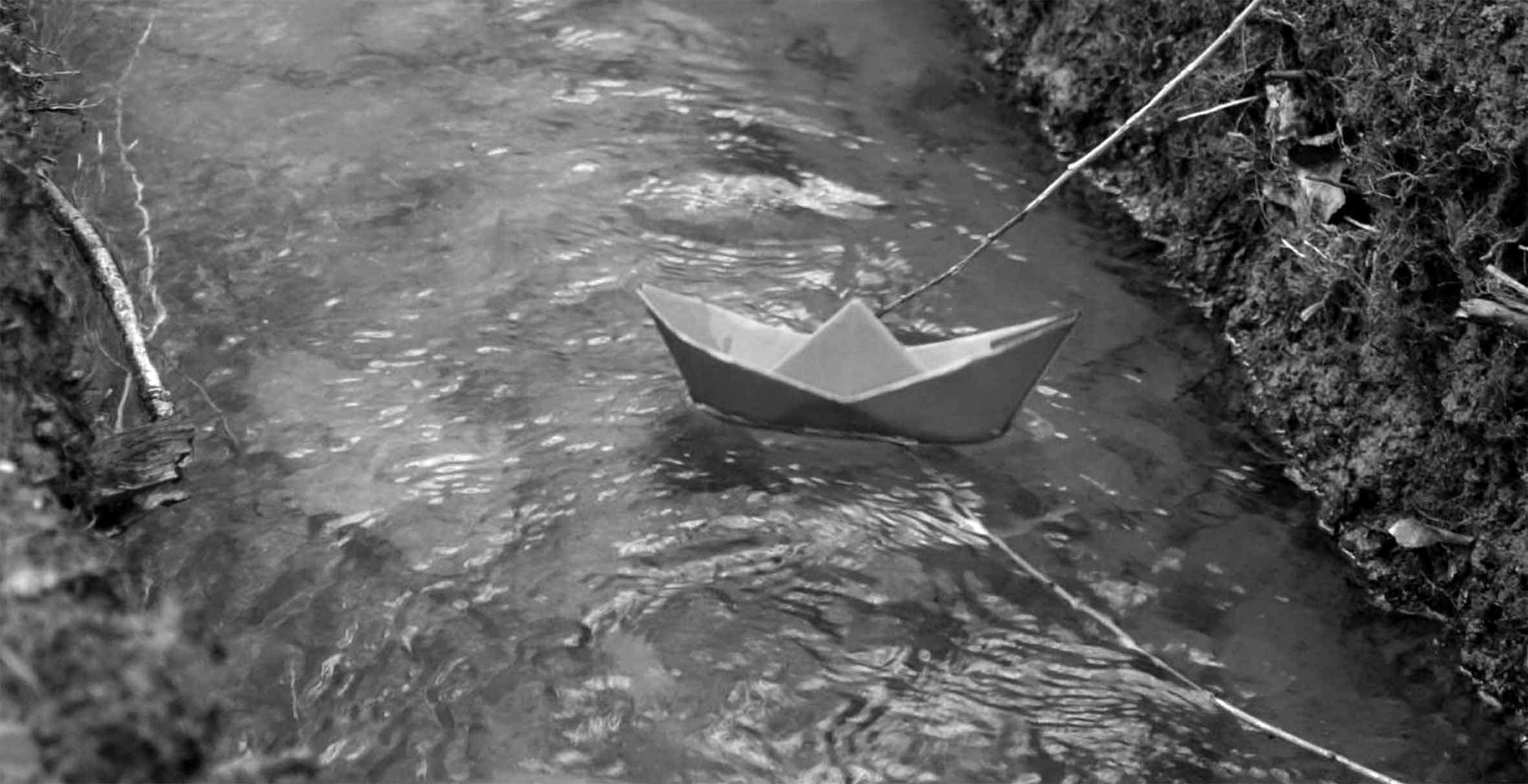 El transcurrir del agua por su cauce y adentrarse en él con la protección que unas botas nos brindan. Invitados de excepción para percibir su incesante curso, su vida, con un humilde barquito de papel que se desplaza a merced de la corriente.
