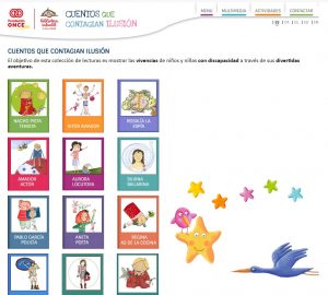 La Fundación ONCE pone al alcance una colección de libros cuyo objetivo es mostrar las vivencias de niños y niñas con discapacidad a través de sus divertidas aventuras. Se pueden leer en línea e incluyen explicación sobre distintos transtornos.