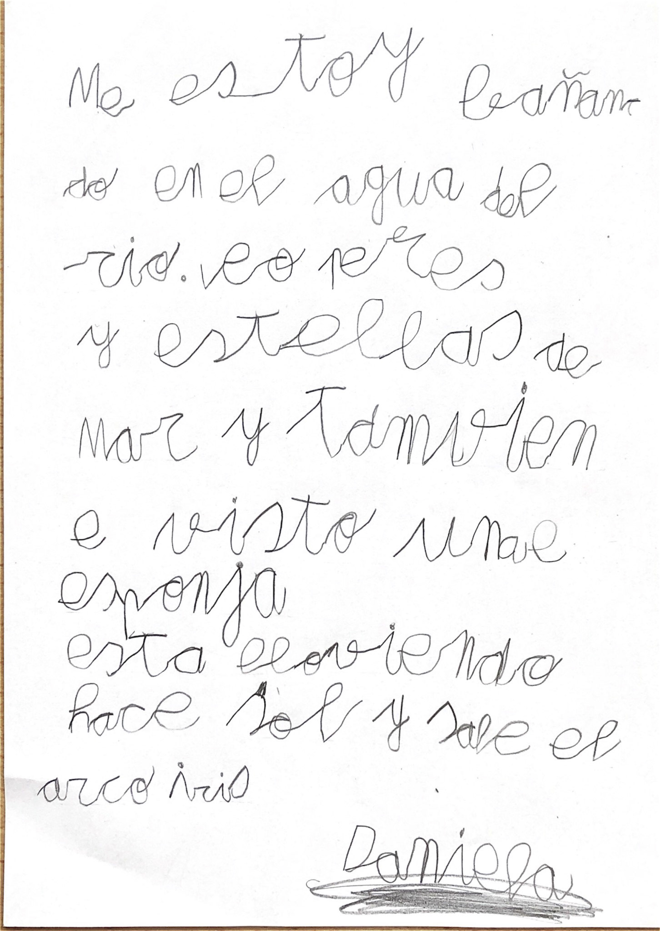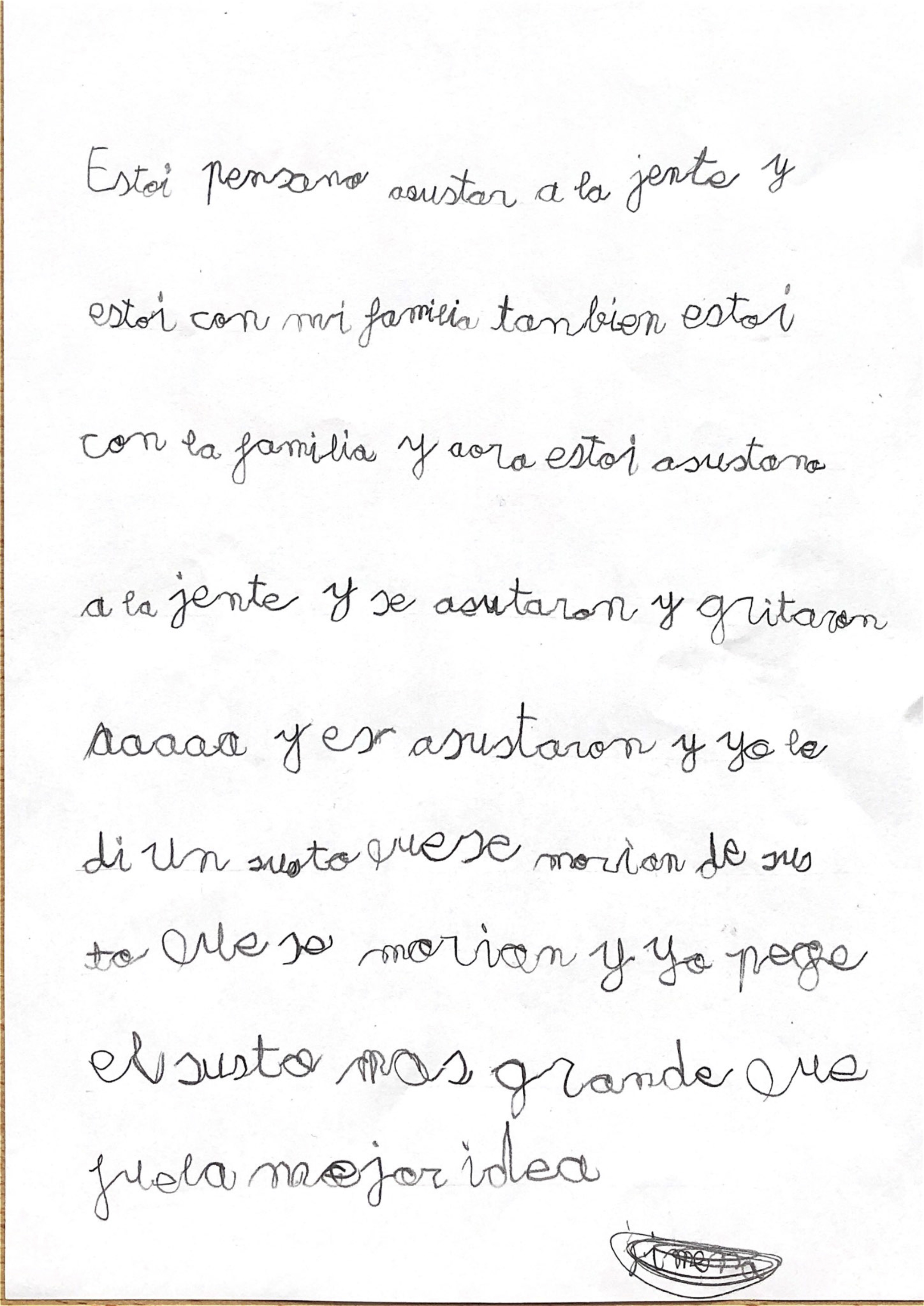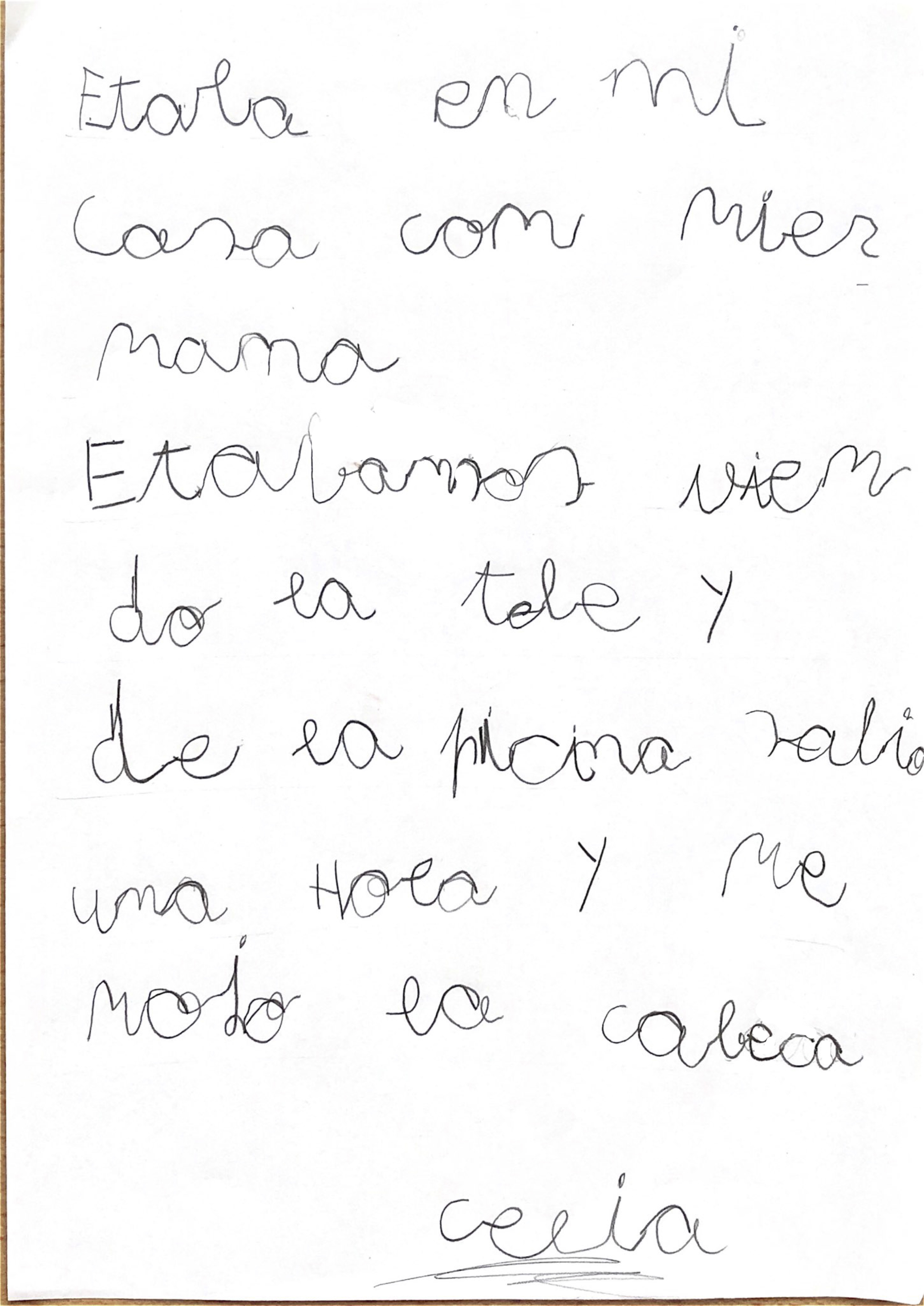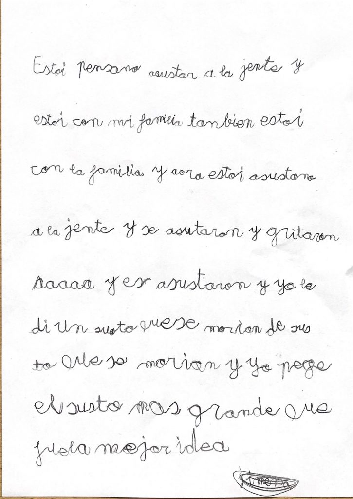 Al ser una carta oficial decidieron que era necesario «escribir en el ordenador», ya que es la opción que se usa en estos tipos de documentos. Respetando su nivel de desarrollo en la adquisición del sistema de escritura y confiando en que el texto sería comprendido por quien recibiera la carta, los acompañamos en la escritura, buscando que pudiera entenderse, sin correcciones ortográficas para evitar centrarnos más en el error natural que acontece en los procesos de adquisición del código escrito que en el discurso del texto.