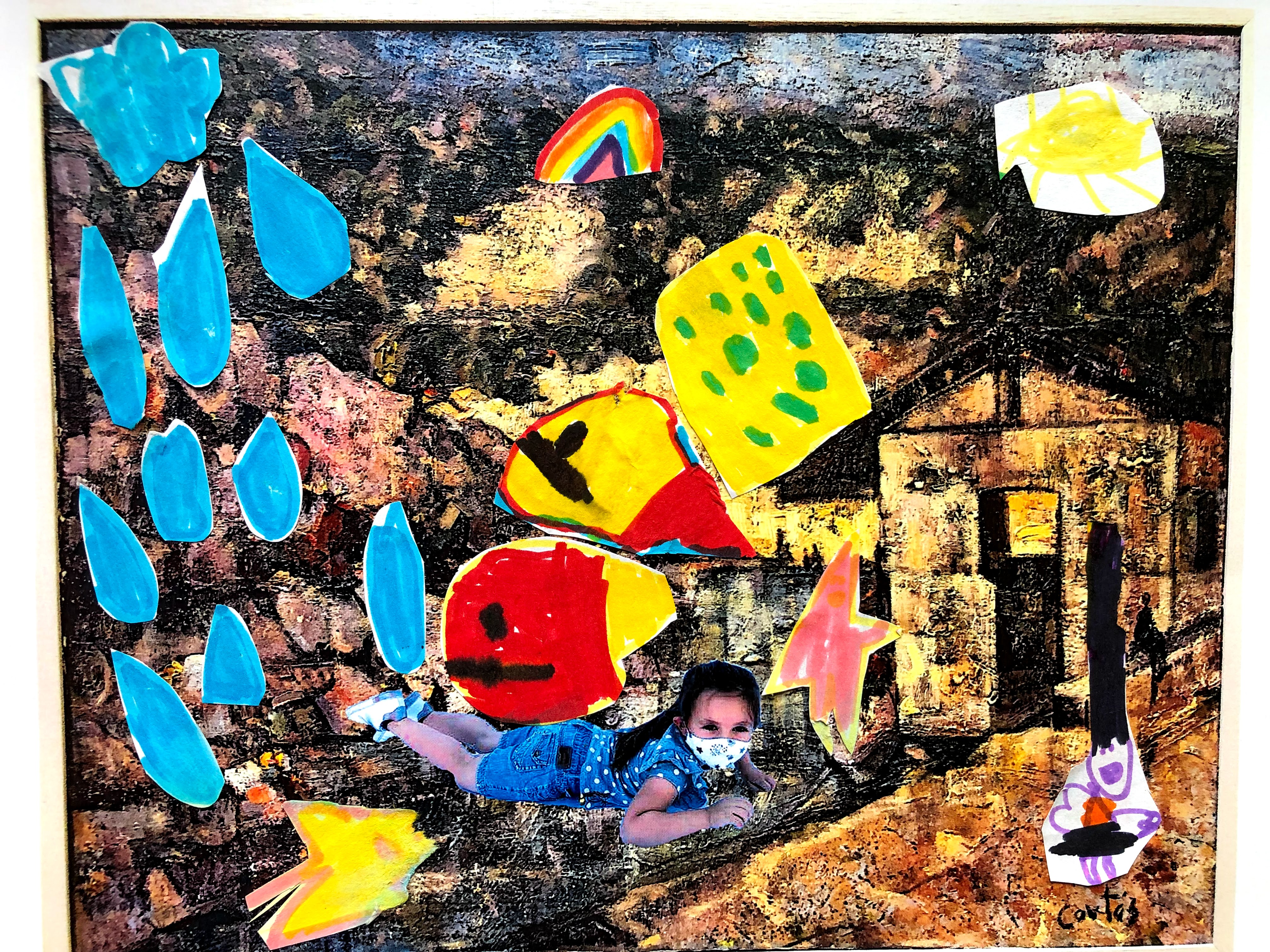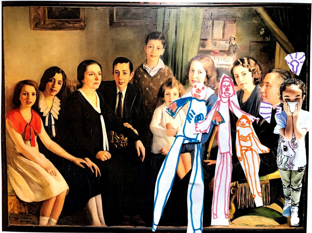 Con el fin de conseguir una visión más integrada de las niñas y los niños en los cuadros, incluimos las fotografías en las telas con un programa de edición de imágenes, y posteriormente se imprimieron para convertirse en el lienzo de partida. Ahora, tocaba analizar qué debía añadirse para completar la narración traduciendo a lenguaje plástico todas las ideas expresadas oralmente ante el grupo.