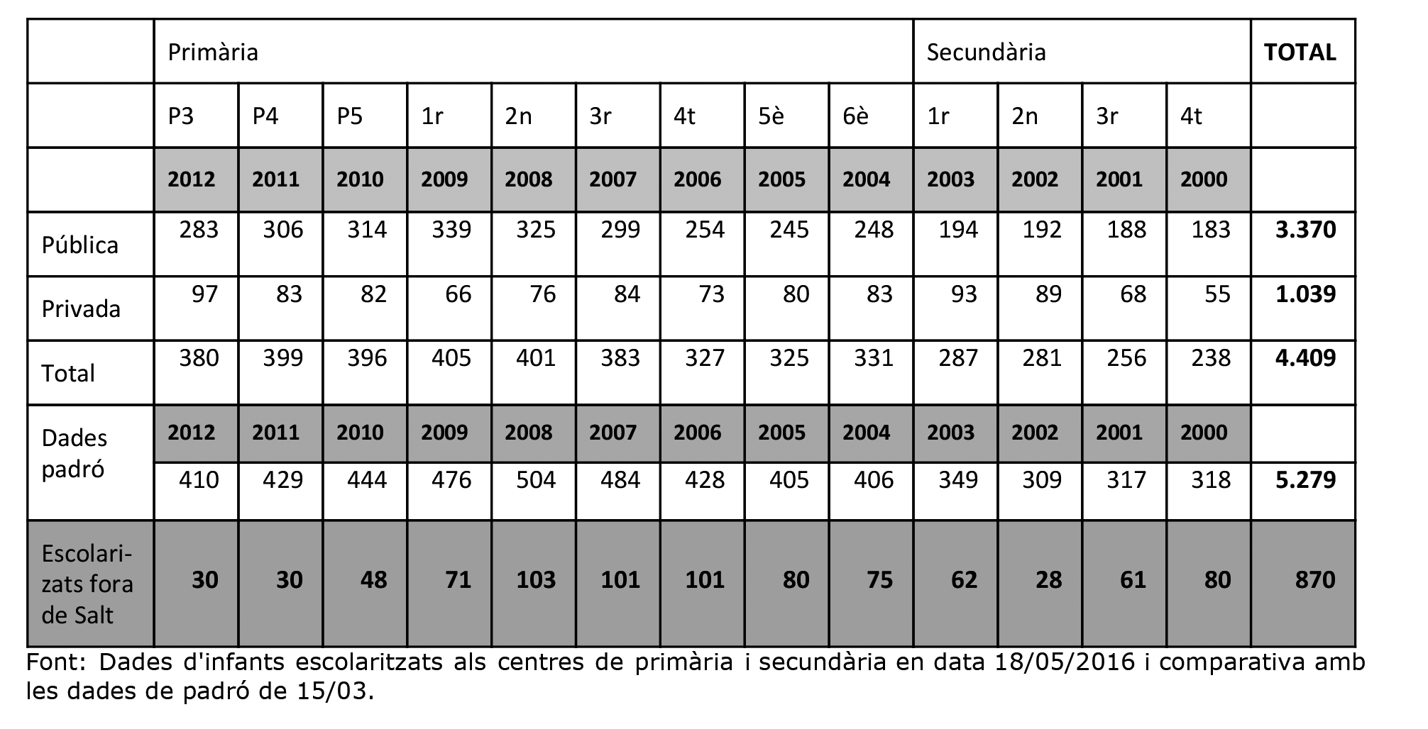 Fuga alumnat escolaritzat fora de Salt