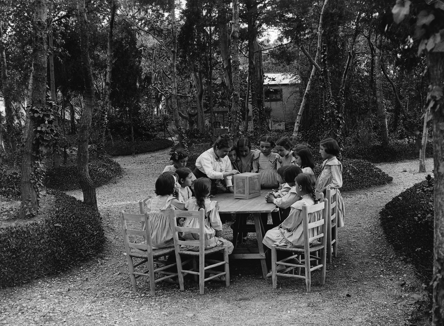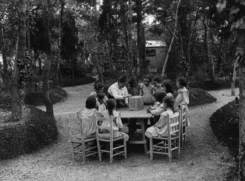 L'Escola de Bosc, creada el 1914 a Montjuïc per l'Ajuntament de Barcelona, va ser una de les obres més esplèndides i rigoroses de l'Escola Nova a Catalunya. La directora Rosa Sensat i Vilà deia: «Hem d'aprendre a perdre el temps per tal de guanyar-lo. No ens preocupem ni per les lliçons ni pels llibres. La primera cosa és aprendre a viure». Observant aquesta fotografia, el catedràtic i biògraf de Rosa Sensat, Josep González-Agàpito, feia aquesta reflexió: «Fa més de cent anys i encara tenim escoles que semblen més antigues...». [caption id="attachment_93970" align="alignleft" width="850"] Any: 1914