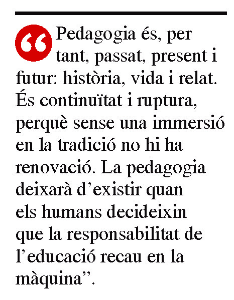 Art, ciència i ètica s’apleguen en molts àmbits de la vida. Bellesa, veritat i bondat són aspiracions compartides per la gent amb aspiracions nobles i justes. Des de les respectives àrees d’especialització i devoció, tothom ho intenta de la millor manera. Cap altra com la pedagogia, però, ho integra i ho canalitza en una faceta tan complexa com és l’educació. És la seva intenció, si més no.