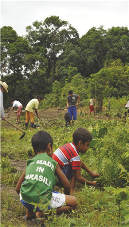 Niños ayudando a mantener un campo de yuca. Parauá , 2012.