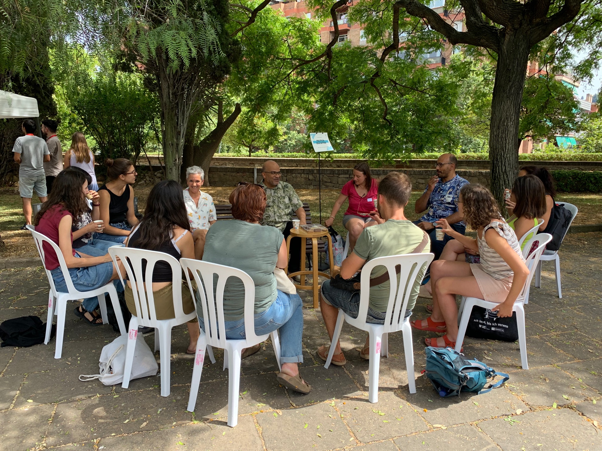 Taula rodona ‘Els espais exteriors i les relacions a l’escola’ amb Pitu Fernàndez, Rubèn Pineda, Aleix Vila i Emma Cortès. Pati, AMRS
